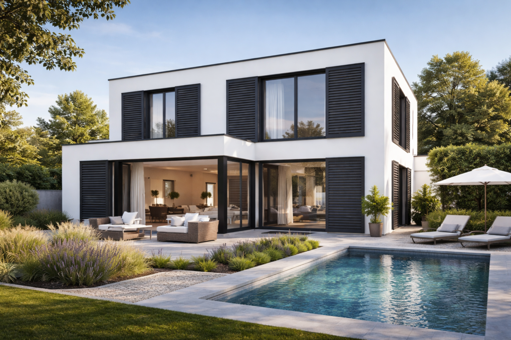 Un innovativo pannello domotico centrale consente l’apertura e la chiusura automatizzata delle persiane (anche in modalità orientamento) e il controllo delle principali illuminazioni.